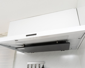 整流板には汚れを落としやすいホーロー製を採用。排気電動シャッターと給気連動仕様で外気の流入を制御します。