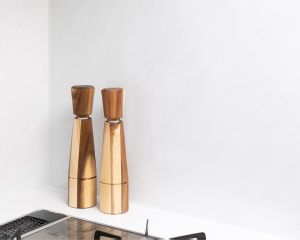 カウンタートップの素材は高級感あふれる人工大理石天板を使用。継ぎ目のない一枚トップで日々のお手入れも簡単です。
