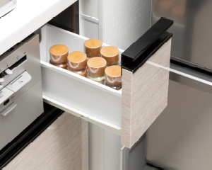 料理に必要なスパイスや調味料をすぐに取り出せるスライド式のキャビネット。たくさんの種類を整理して収納できます。