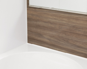 バスルームを上質なインテリア空間に変える、壁パネルで仕上げました。乾きも速く、掃除などのお手入れもしやすくなりました。