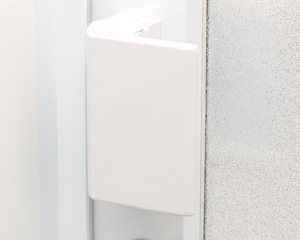 カビやすい浴室側のゴムパッキンをなくし、汚れがたまりやすいドア下部のガラリをタテ型に配置。汚れにくいドアを実現しました。