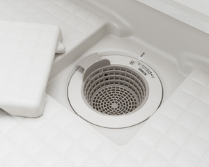 浴室の排水口にたまった髪の毛を、残り湯を使って上手にまとめ、直接触らずに捨てられる排水口を採用。お手入れも手を汚すことなく簡単にできます。