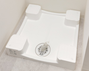 洗濯機置場は、洗濯機の下も掃除出来るように、足高の洗濯機パンをご用意しました。