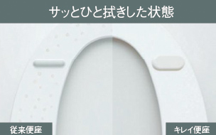 汚れが入りやすい継ぎ目がありません。新素材により、気になる便座裏の汚れもサッとひと拭き、お掃除ラクラク。