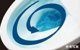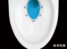 強力な水流が便器鉢内の隅々まで回り、少ない水でもしっかり洗浄。◎フチレス形状