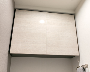 - 鏡面仕上げの扉を採用した トイレ吊戸棚