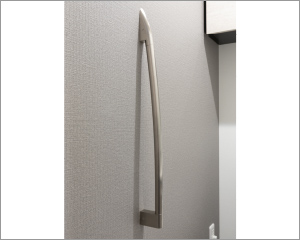 便座への腰掛け、立ち上がる時など、身体を支えられる手すりを設置しました。