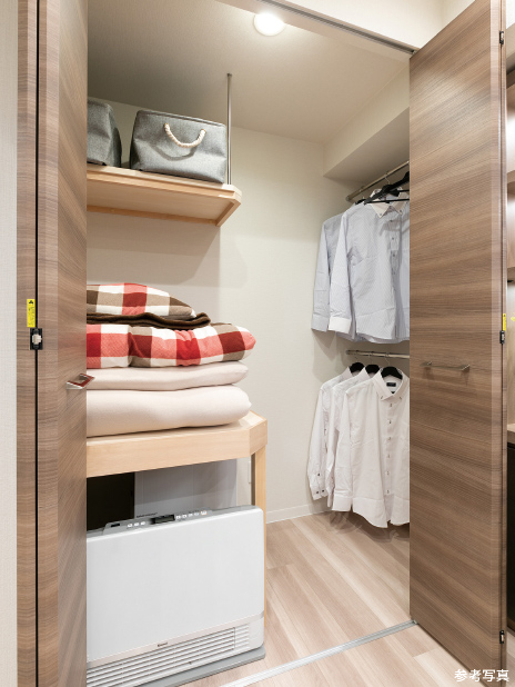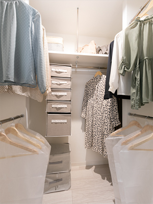 主寝室(洋室1)には衣類などをたっぷりと収納できる大容量のウォークインクローゼットを採用。夏物・冬物の衣類をしっかりと整理収納することができます。