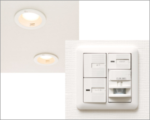 住戸内のダウンライト、ブラケットライトには、LED照明を採用。長寿命で、環境や家計にやさしい仕様です。