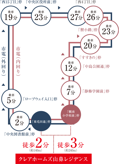 市電「東屯田通」停(外回り) 市電「幌南小学校前」停(内回り)