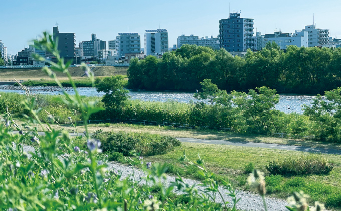 美しい緑景の豊平川では、散歩やジョギングも楽しめます。